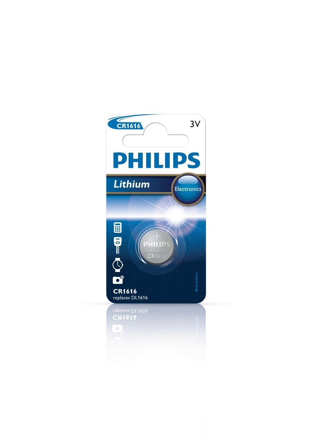 : Descrizione prodotto Nome stile:CR1616 Top quality technology for small devices Provides a long lasting performance in everyday small electronic devices Top Performance - Reliable for long term performance - Lithium, Silver and Alkaline technology for small devices - The battery remains fresh for use for up to 3 years Other Characteristics: Battery form factor: Button/coin Battery technology: Lithium Battery type: Button cell / Lithium Battery voltage: 3 V Button/coin battery size: CR1616 Colour of product: Silver Depth: 60 mm Dimensions (WxDxH): 40 x 60 x 1 mm Height: 1 mm Number of batteries included: 1 Weight: 2 g Width: 40 mmPhilips CR161600b Mini Pila a Bottone, Litio, 3 V, Argento specificazione