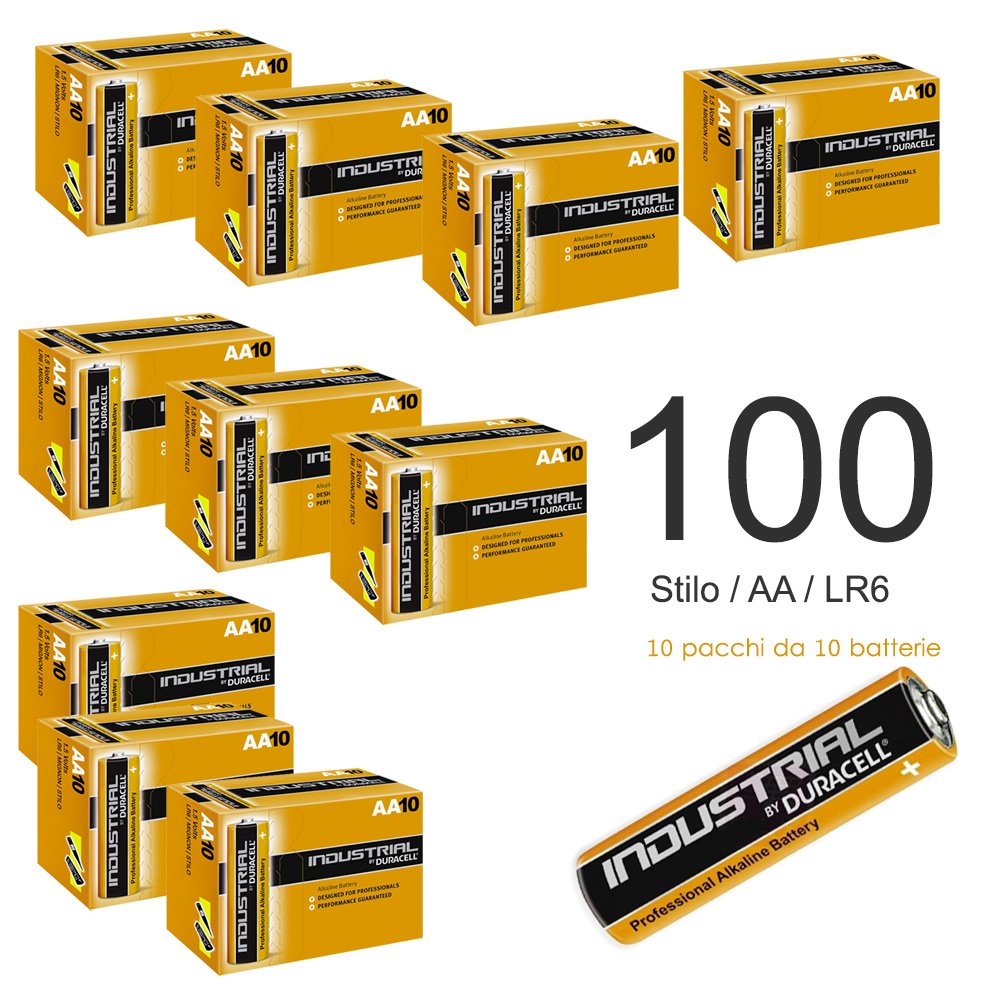 100 Pile DURACELL INDUSTRIAL Stilo AA LR6 Alcaline Pila Alta Capacità descrizione